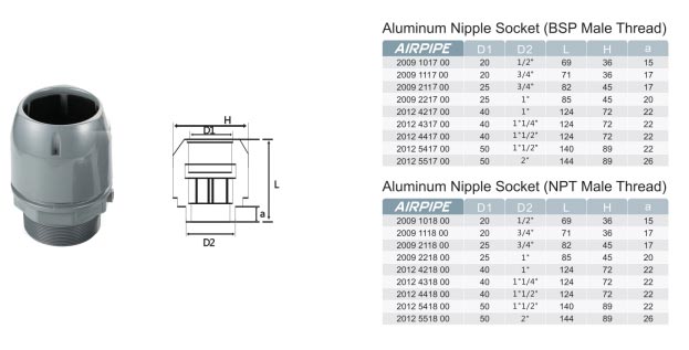 Aluminum Nipple Socket (Male Thread)