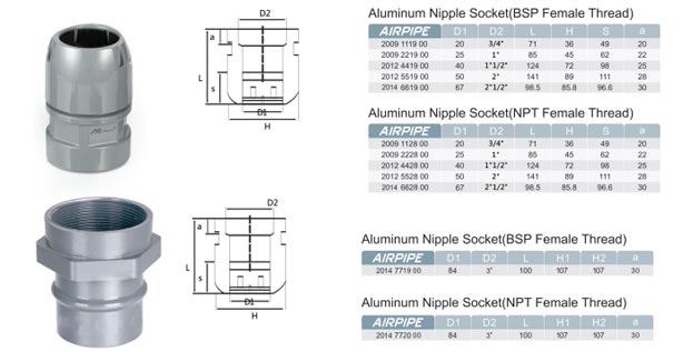 Aluminum Nipple Socket (Female Thread)
